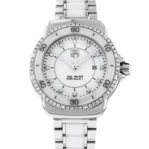 This is a Pre Owned Tag Heuer Formula 1 Ladies watch. It has a 32 mm Stainless Steel & White Ceramic case, White dial on a Stainless Steel & White Ceramic Bracelet. The watch is powered by Quartz movement.
